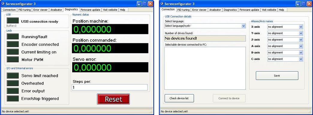 A Servoconfigurator 3 szoftver segítségével beállíthatja és felügyelheti a szervomotor szabályzóink különböző típusait. Aktuális verzió: R3.20 |